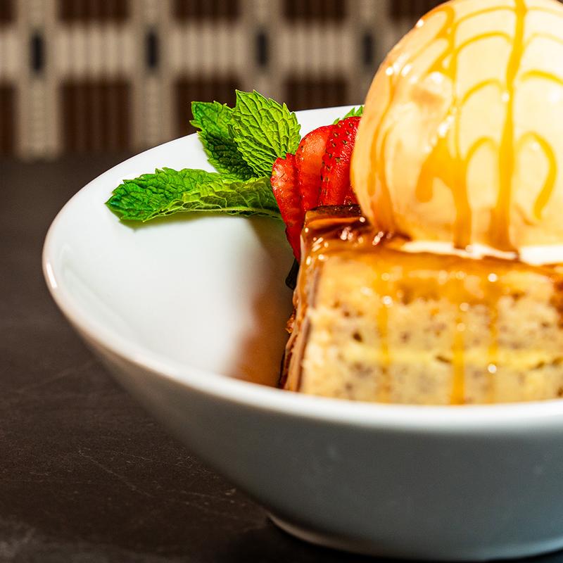 Yukon Gold garlic mashed potatoes, seasonal vegetables, peppermint demi-glace.